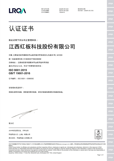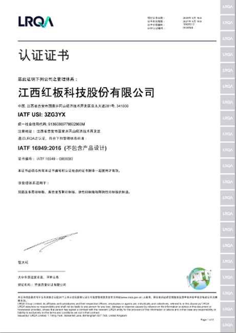 江西必赢76net线路官网股份有限公司于2009年正式获得IATF16949体系证书,经过多年的持续改善,已能有效的保证汽车用的线路板的品质,提升客户满意度。